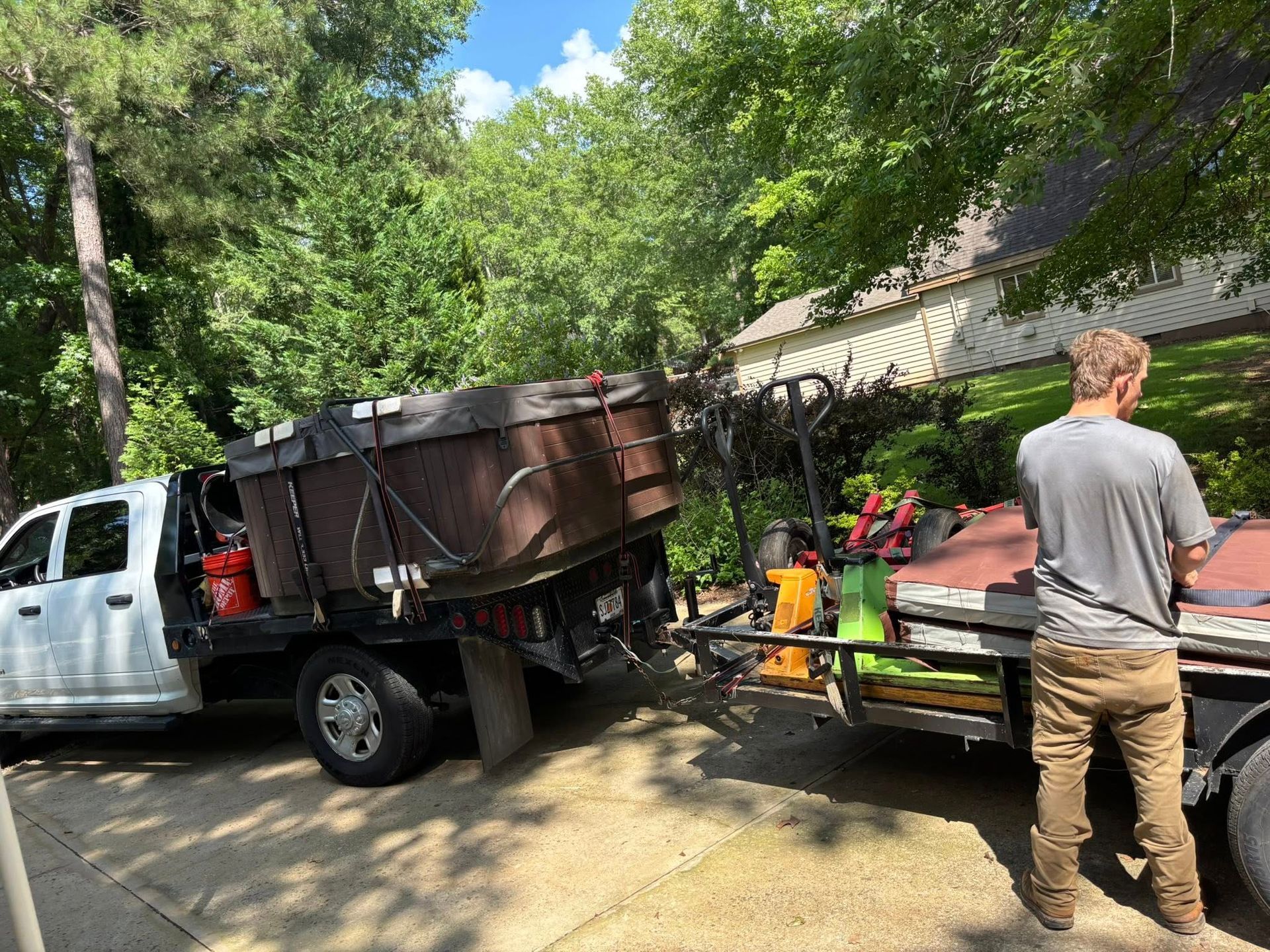 Check out our team's expertise and dedication in action. These images show our seamless and dependable services for delivering, moving, and disposing of hot tubs, swim spas, and saunas with the utmost care and efficiency.